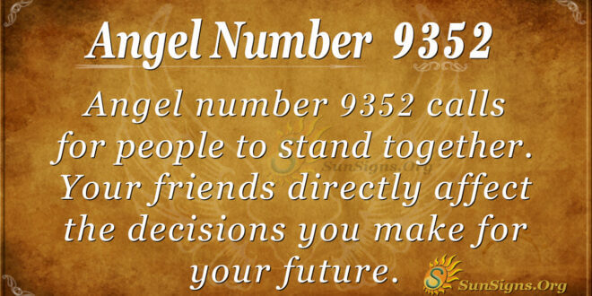 Lucky Angel number 9352 calls for people to stand together. Your friends directly affect the decisions you make for your future. Then be careful who comes into your life.