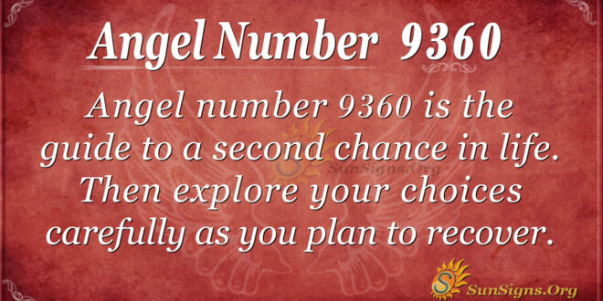 Angel number 9360 is the guide to a second chance in life. Then explore your choices carefully as you plan to recover.