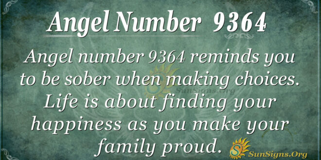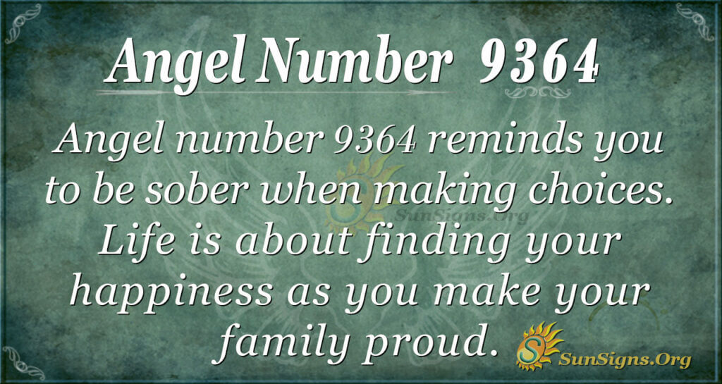 Angel number 9364 reminds you to be sober when making choices. Life is about finding your happiness as you make your family proud. In essence, accomplish your mission alongside your family.