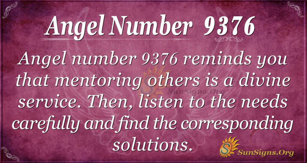 Angel number 9376 reminds you that mentoring others is a divine service. Then, listen to the needs carefully and find the corresponding solutions.