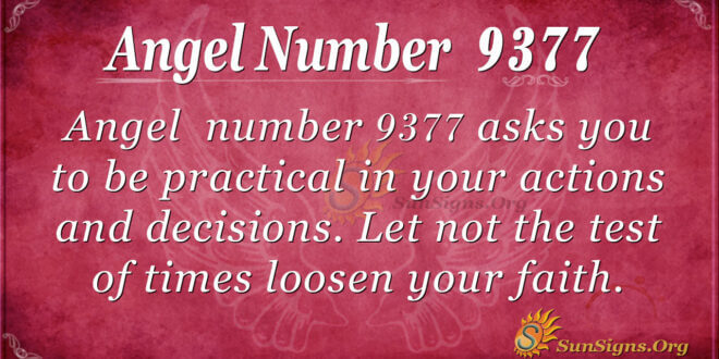 The meaning of 9377 reveals that you should move on to better things in your love life because your guardian angels have your back. Your guardian angels are encouraging you to walk away from toxic relationships. You are better than being abused, both emotionally and physically.