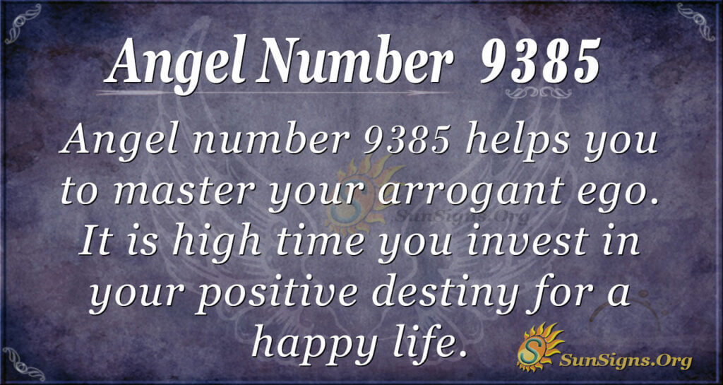 Angel number 9385 helps you to master your arrogant ego. It is high time you invest in your positive destiny for a happy life.