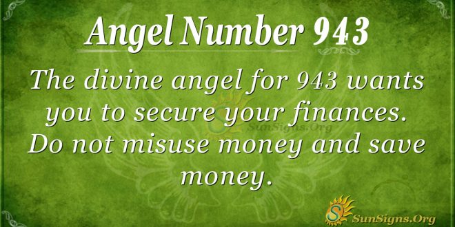 The divine angel for 943 wants you to secure your finances. Do not misuse money. Get rid of the parasites in your life. The leeches will consume you. Open an account to save your money. It is necessary for the future that you see in your dreams. Disrespecting money is a felony that is punished by poverty.