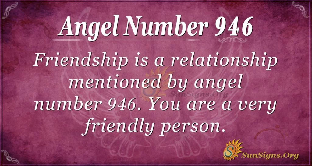 Friendship is a relationship mentioned by angel number 946. You are an amicable person who becomes friends with anyone who talks to you. It is your specialty to get up close and personal. You were raised in a family of love, so it is hard for you not to be concerned about people.