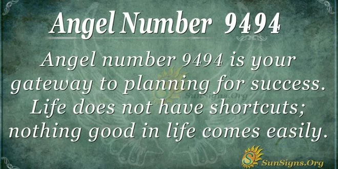 Real success is mostly a painful process. This does not mean the physical pain of the body; it is hugely emotional and psychological wounds. If you plan your strategy well and invoke the guidance of angels, you will succeed. Lucky Angel number 9494 is your gateway to planning for success. Life does not have shortcuts; nothing good in life comes easily.