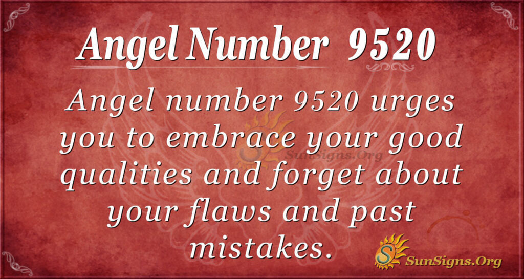 Angel number 9520 encourages you to acknowledge your positive qualities and overlook your flaws and past mistakes. Often, you feel like you need fixing. You may not realize that even with some flow, you remain reliable. Therefore, you should not give up because of your imperfections. Instead, learn from your mistakes and move forward. You can accomplish much more by appreciating yourself.
