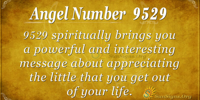 9529 spiritually brings you a powerful and interesting message about appreciating the little you get out of your life. In your pursuit of happiness, you may give yourself the impression that reaching for big or bigger goals will ensure that you live happily. The truth is that you increase the likelihood of getting disappointed in the process.
