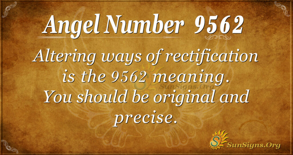 Altering ways of rectification is the 9562 meaning. It would be best if you were original and precise. Moreover, exercise removes the ‘buts’ in life. Singularly, congratulate where it deserves and pin down the mischiefs. You should know being a manager of life is not easy.