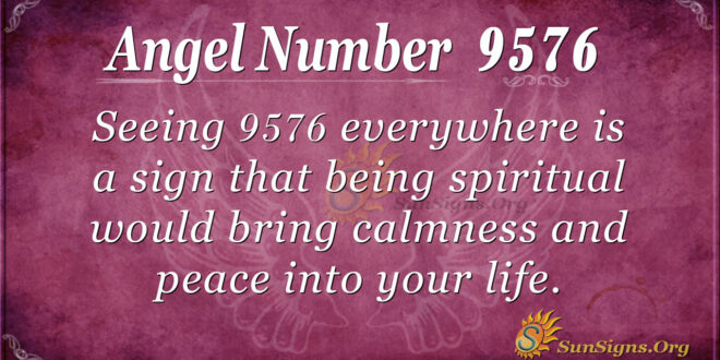 Seeing 9576 everywhere is a sign that being spiritual would bring calmness and peace into your life. Your guardian angels encourage you to cleanse your soul and enlighten your mind by making sure you create time to improve your spiritual well-being.