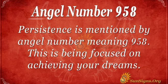 Persistence is mentioned by angel number under 958. This is focused on achieving your dreams. It has been challenging at work. There is so much to be done in very little time. You do not have enough labor to get things done. The angels want you to work tirelessly. The fruits of your labor will manifest soon.