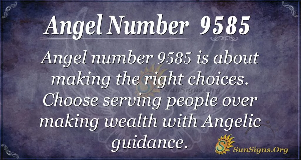 A reasonable person stays close to the angels and chooses serving people over making wealth. Angel number 9585 is about making the right choices.