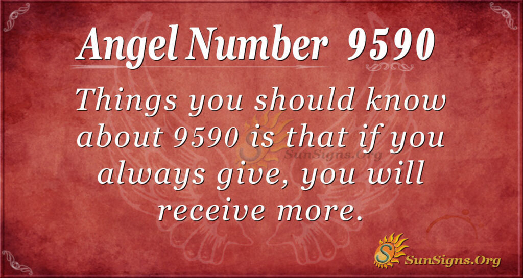 You should know about 9590 that if you always give, you will receive more. When you care for each other, life will become easy for you. More so, your guardian angels want you to enjoy doing things for one another. That is a symbol of respect and togetherness.