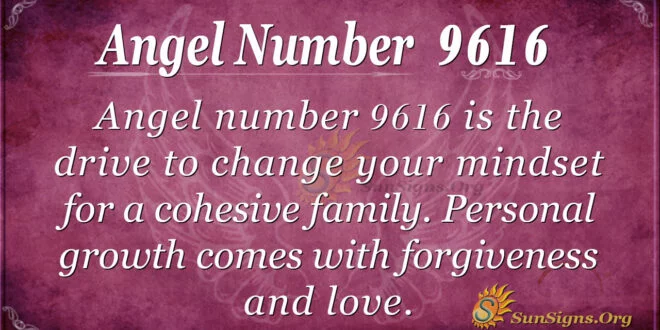 Personal growth requires sacrificing forgiveness and love. Angel number 9616 is the drive to change one’s mindset for a cohesive family.