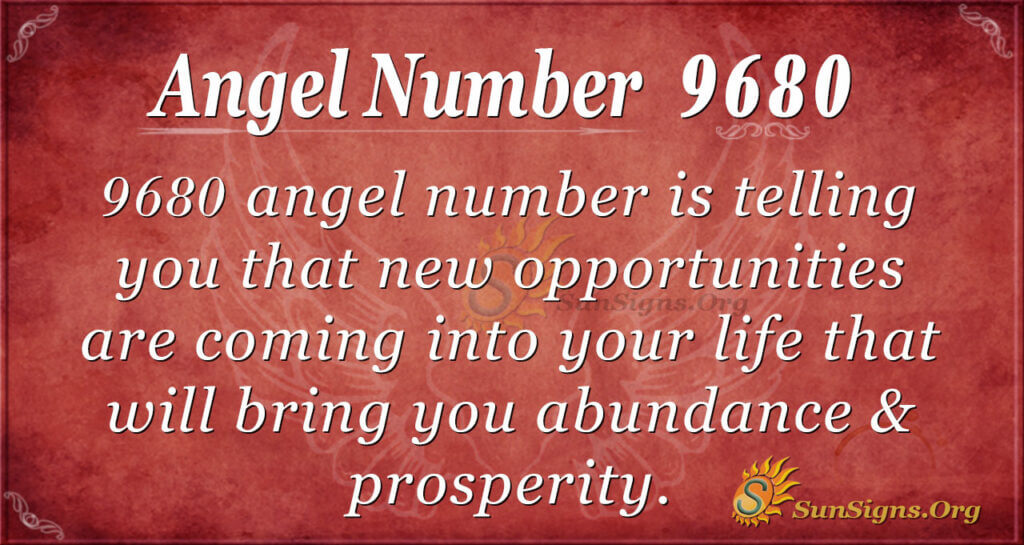 9680 angel number tells you that new opportunities are coming into your life that will bring you abundance and prosperity. Do not let any opportunity pass you by. The time has come to use your talents and gifts to elevate your life. Ask for the guidance and support of your guardian angels, and you will receive the same.