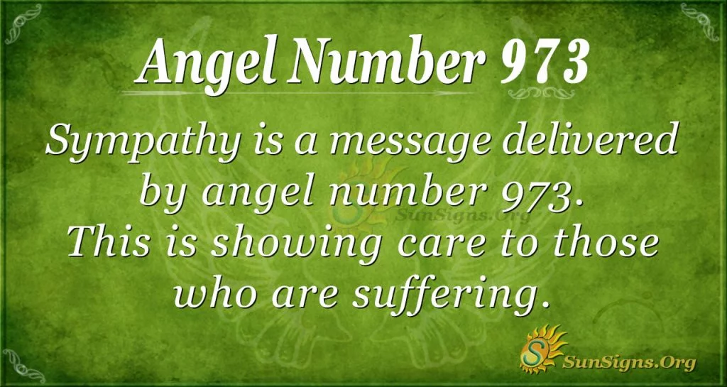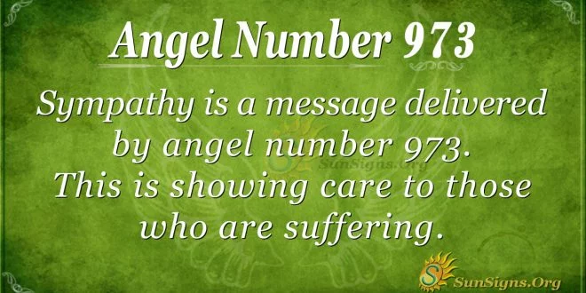 Sympathy is a message delivered by angel number 973. It shows care for those who are suffering. You are a very personal individual. You rarely talk about your issues, and most people do not know about your woes and misfortunes.