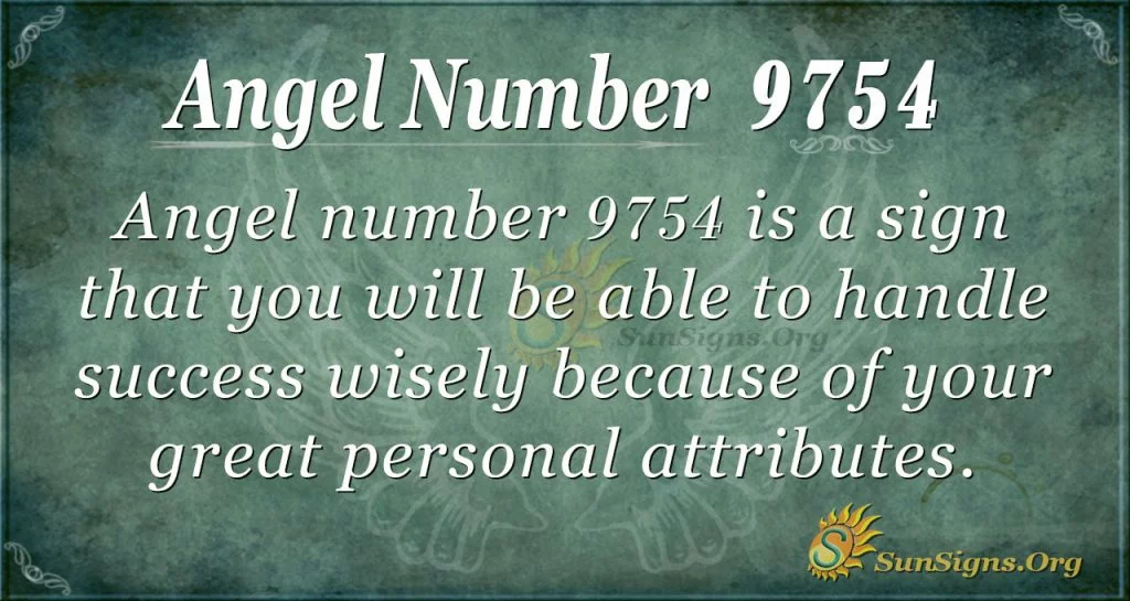 Angel number 9754 is a sign that you will be able to handle success because your attributes are a great testament to who you are. You should find joy inside as you go about your day-to-day life. Always keep up with your spiritual life as it is good practice. The divine realm reminds you that your gifts are the gateway to solving problems in your life. You should be courageous when making decisions as you are assured of success.
