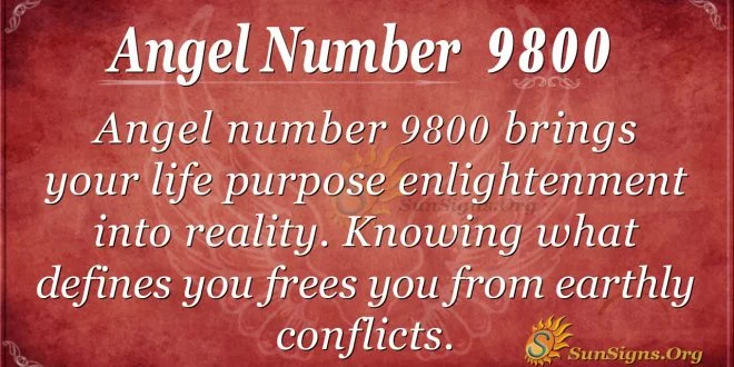 Angel number 9800 brings your life purpose enlightenment into reality. Knowing what defines you frees you from earthly conflicts.