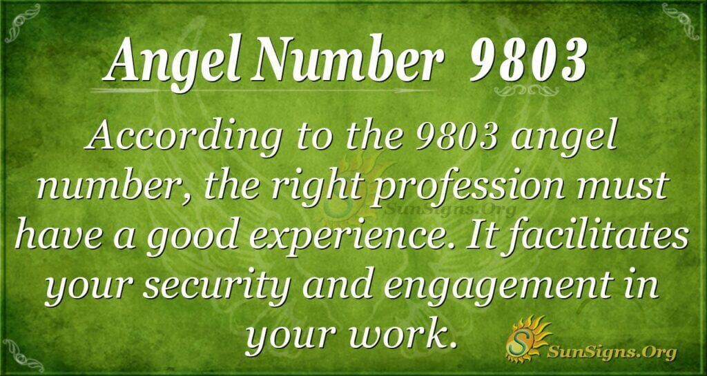 According to the 9803 angel number twin flame, to be in the right profession you must have a good experience. It facilitates your security and engagement in your work. So, I find it prudent if you train yourself in a better way to see that your dreams and desires come to pass.