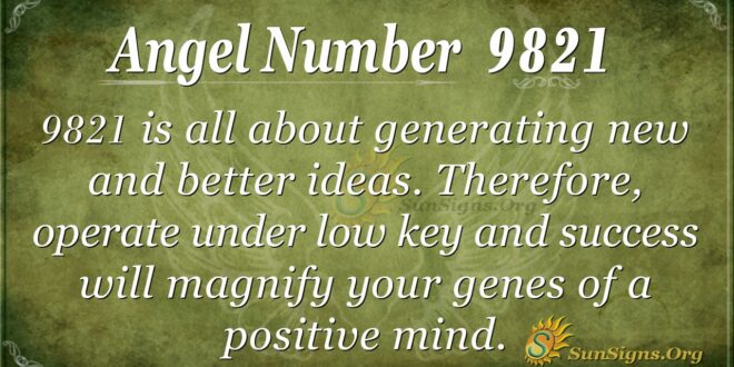 9821 is all about generating new and better ideas. Therefore, operating under low key and success will magnify your genes of a positive mind. Be humble, and patiently pursue your aspirations.