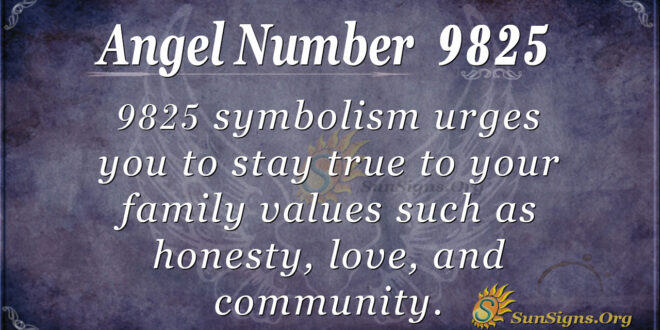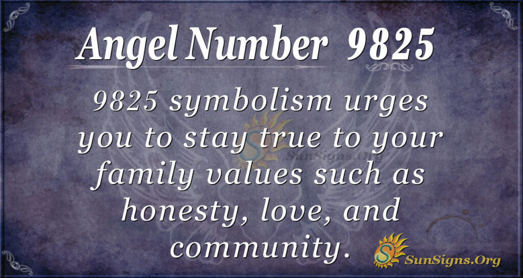 9825 symbolism urges you to stay true to your family values, such as honesty, love, and community. They will teach you how to build your own family. You should learn from your elders about the importance of strong foundations for lasting bonds in marriage. Identify a child in need and offer to cater to their education and training. That simple act of kindness will impact their life forever.