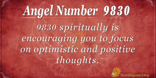9830 spiritually is encouraging you to focus on optimistic thoughts. Incorporate gratitude and intentional living practices, as they will help you tune out negative thoughts. Always adjust your attitude, even when times are challenging, by affirming your blessings.