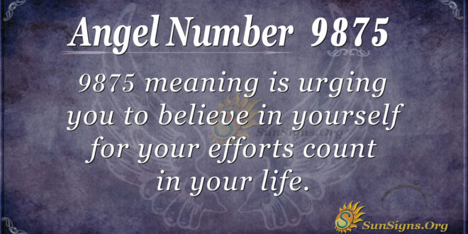 9875 angel number is a combination of the influences of the numbers 9, 8, 7, and 5. Number 9 is asking you to know yourself and your life purpose.