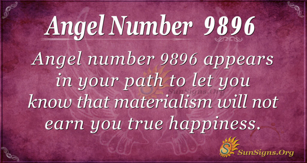 In summary, angel number 9896 appears in your path to let you know that materialism will not earn you true happiness.