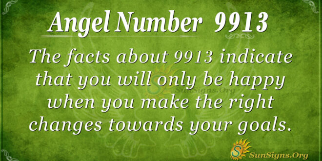 One clear message your guardian angels send is that taking charge of your life is up to you. Never expect that people will help you climb your ladder to success. 9913 spiritually denotes that you are fully responsible for your success.