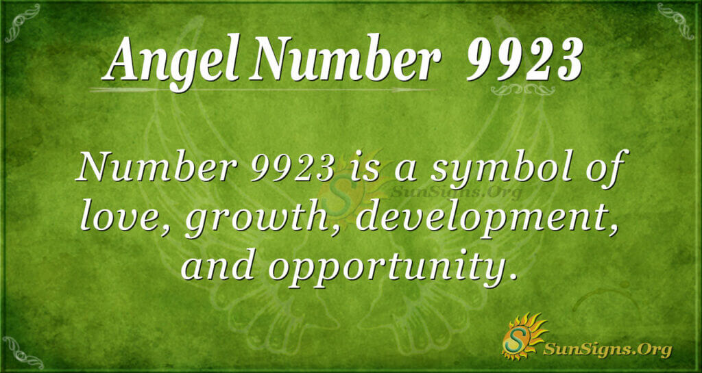 Number 9923 is a symbol of love, growth, development, and opportunity. Furthermore, you’ll keep seeing this number as encouragement and inspiration. Also, the angel is helping you gain positivity and strength. So, work diligently towards your desired objectives. Have faith in guardian angels for a brighter and calmer future.