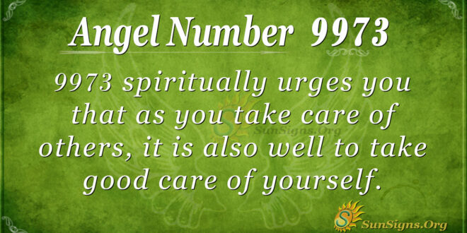9973 spiritually urges you to take good care of yourself as you take care of others. Remember, you have some emotional, physical, and spiritual needs that need your attention. The angels want to see you happy.