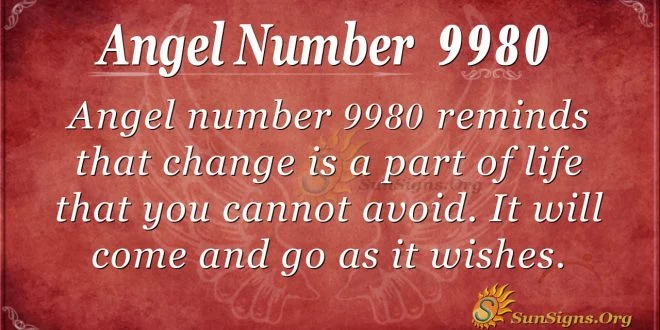 9980, meaning reveals that the major changes that you are going through now in your life have a reason. They are happening because of your positivity and optimism in life. You should know that nothing is ever accidental in life. Everything happens in your life for a reason. It would help if you welcomed positive energies into your life so that your life could change for the better.