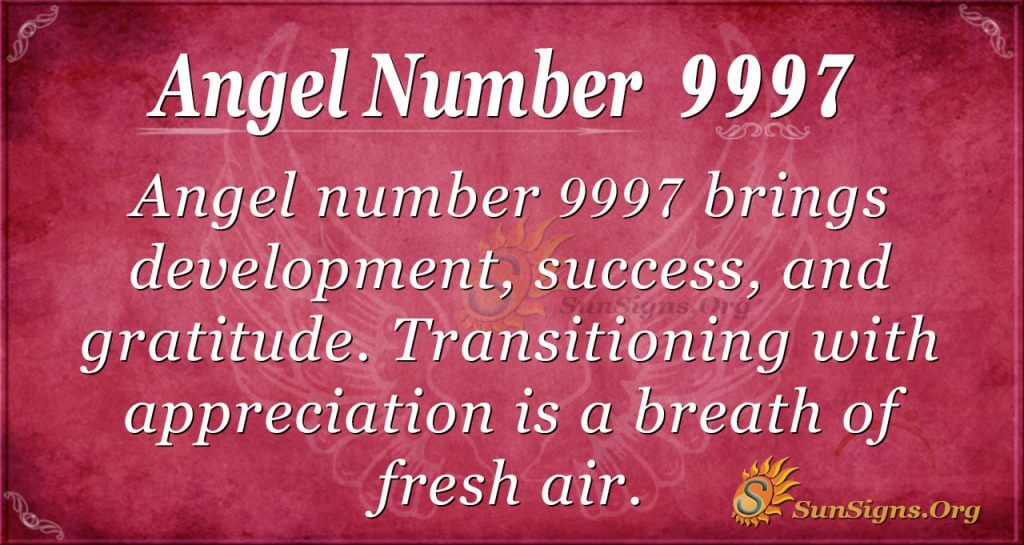 When you move to a better workplace, you should make your skills worthwhile. Angel number 9997 brings development, success, and gratitude. Transitioning to where you have some appreciation is a breath of fresh air.