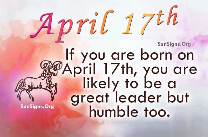 Famous people born on April 17th are likely to be a great leader but often take themselves too seriously. This Aries person is humble and responsible who cares about others. In love, they are quick to make a compromise. They have good money management skills.