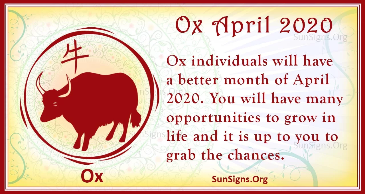 Ox individuals will have a better month of April, 2020. You will have many opportunities to grow in life and it is up to you to grab the chances.