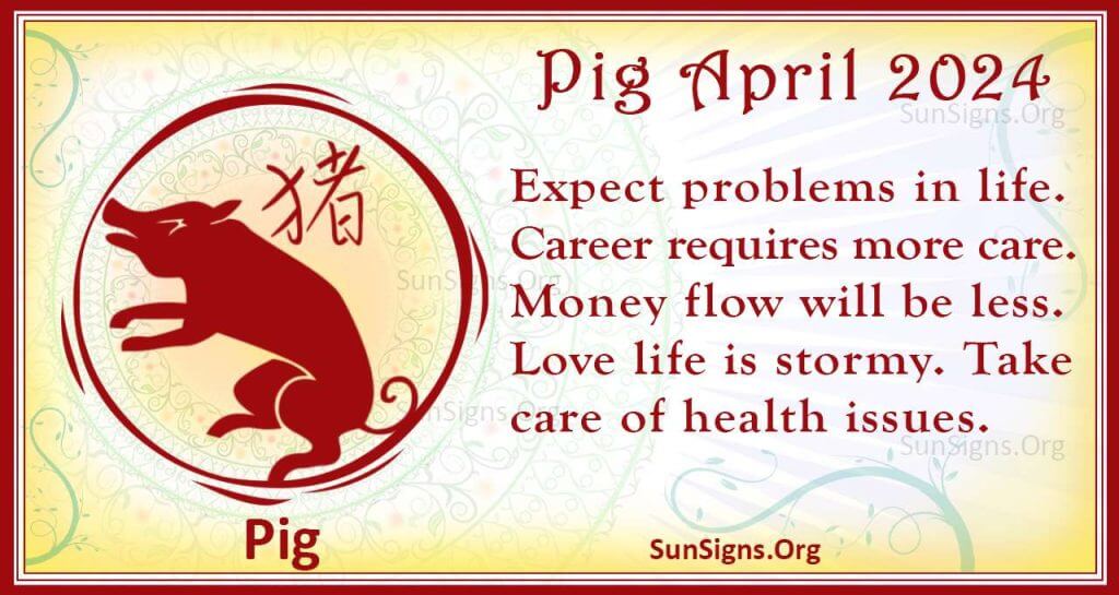 Pig individuals should expect a challenging month of April 2024. Finances will improve compared to March. Still, it will be below par. The career requires more concentration. All projects should be handled with more diligence and smartness.
