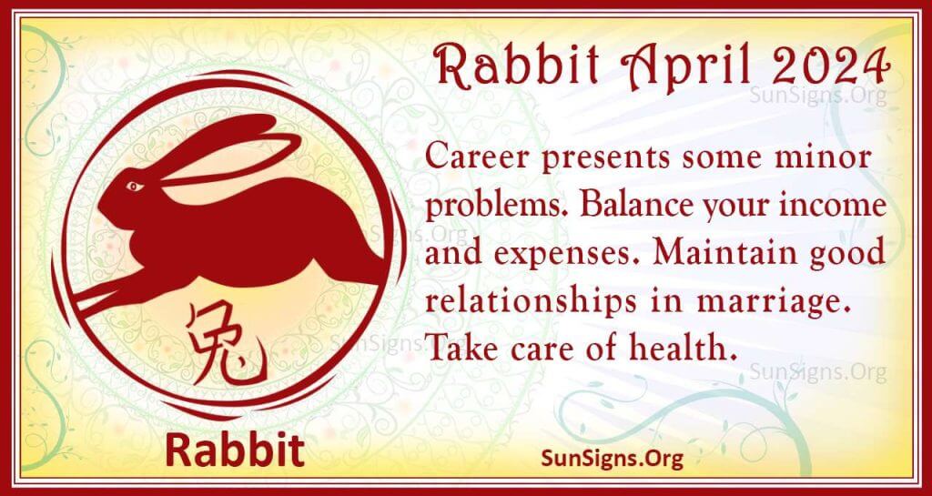 Rabbits may face quite a few challenges during April. Relationships with colleagues and seniors at the workplace will not be harmonious. This will have a problem in finishing their projects. Expenses tend to overtake income. Prudence is necessary to balance your income with expenditure.