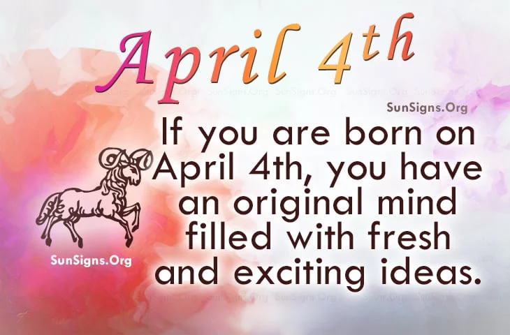 Famous people born on April 4th are Aries who are likely overbearing but tell the truth. They are entrepreneurs who has an original mind filled with fresh and exciting ideas. They are able to make decisions based on equal opportunity and without biases.