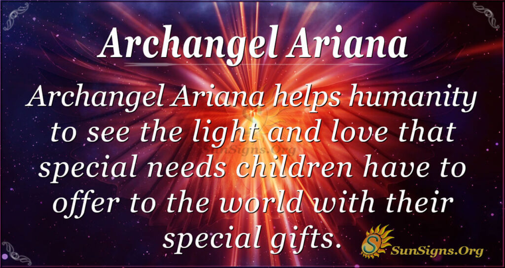 Ariana Archangel guides special or disabled children. She ensures that these children get proper love and attention from their guardians or parents. She works to protect these children from harm. So many people feel burdened and unloved by God when they welcome a special needs child into the family. Ariana gives them hope that things will turn out for the better, and that God will provide for their needs.