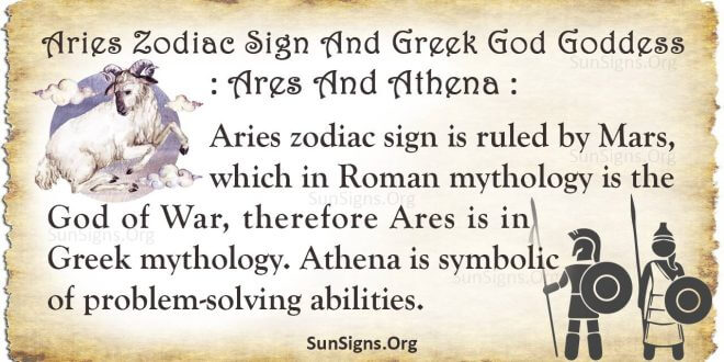 In Greek mythology, Ares was the son of Zeus and Hera. Being the God of War, he represented the violent aspects of a battle. Aries zodiac sign is ruled by Mars, which in Roman mythology is the God of War, therefore Ares is in Greek mythology.