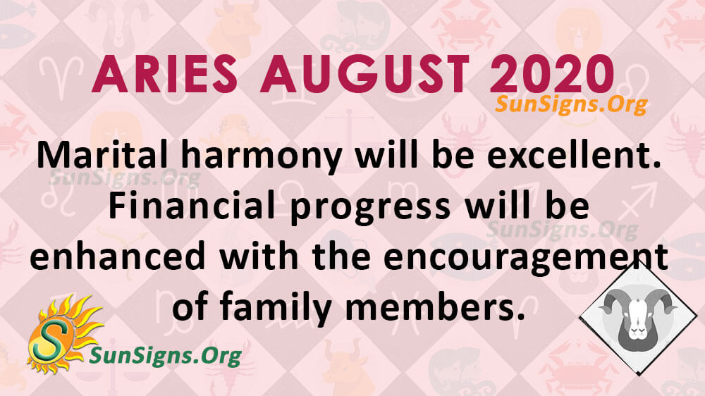 August Aries 2020 horoscope predictions foretell that health will be fantastic during the month. Vitality can be improved with rigorous exercises and a good diet plan. Mental health can be ensured through proper relaxation and meditation. Prompt medical care will eliminate minor ailments says your monthly horoscope.