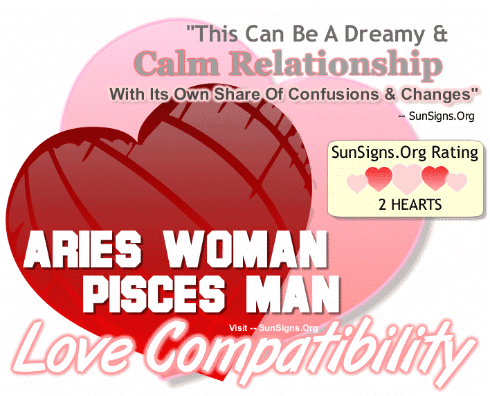 Aries Woman Compatibility With Pisces Man:- Pisces sun sign is softer and quieter than Aries so he has to be careful not to let her walk all over him. He will enjoy her dominance in the bedroom however because she aims to bring them both the maximum amount of pleasure. The Pisces male is tender and sweet and she brings enthusiasm and passion leaving them both satisfied. But outside the bedroom, she can come off as selfish especially compared to the generous Pisces so they will have to communicate their wants and needs. Continue Reading…