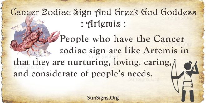 Cancer natives love being around children and always ensure their loved ones live their best lives. Artemis is depicted as a huntress carrying a bow and arrow. Most people born under the Cancer zodiac sign, are healers just like Artemis, who was the healer of women.
