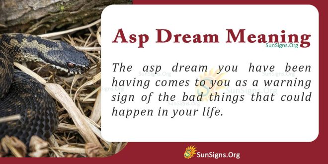 Seeing an asp dream signals you of the potential danger in your path. Now is the perfect time to self-reflect and understand yourself better. Asps in dreams comes to you as a warning sign of the bad things that could happen in your life.