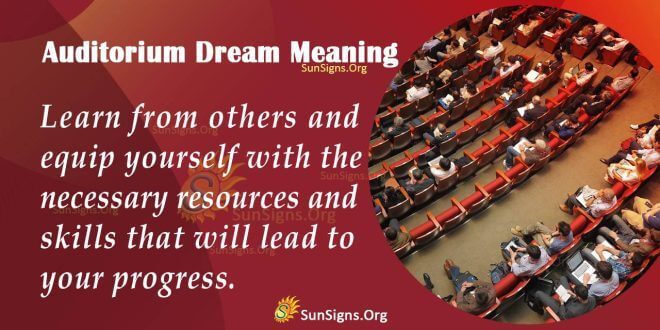 Dreaming of an auditorium means being ready to learn new things. Learn from others and equip yourself with the necessary resources and skills that will lead to your progress.