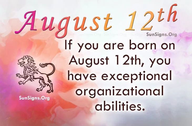 As a partner, they are dedicated and loyal. Because they are a Leo born on this day August 12, they are likely in charge. They try to match the employee with a job they love so it will be done right and everyone will be happy. Exceptional leaders are only there because they have a leading team.