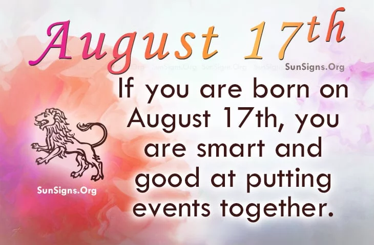 Famous people born on AUGUST 17th are Leos who are smart and good at putting events together. Their family and loved ones adore them. They are important to this Leo. They could learn to be more tolerant and flexible as life is ever-changing. They want the finest life offers.