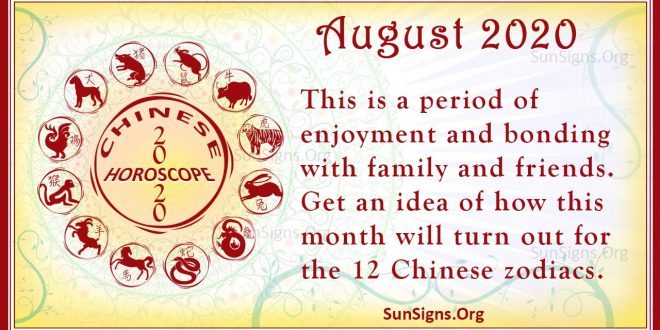 Welcome to Sunsigns.Org’s August (Month 8)2020 Chinese monthly horoscopes. This is a period of enjoyment and bonding with family and friends. Chinese August Horoscope 2020 gives you a good idea of how this month will turn out for the 12 Chinese zodiacs. Take a look at how career, finance, love, social relationships and health will turn out.