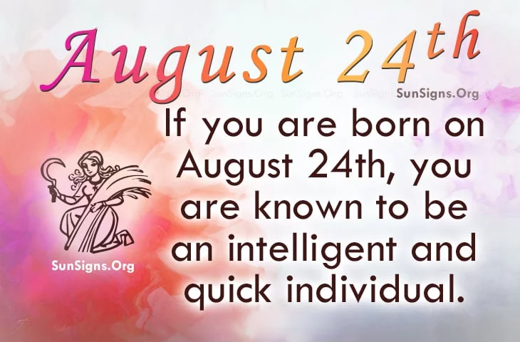 Famous people born on AUGUST 24 fall under the zodiac sign Virgo. These people are known to be intelligent and quick individuals. They provide many amusing and interesting hours of conversation.
