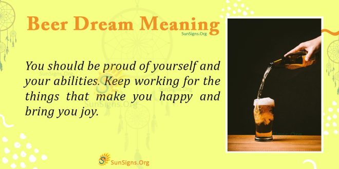 What does beer in your dream mean? This dream signifies excellent satisfaction and happiness. You are doing well with your life. Soon, you will reach your targets and enjoy the fruits of your labor. You should be proud of yourself and your abilities. Keep working for the things that make you happy and bring you joy. Allow light to always manifest in your life.