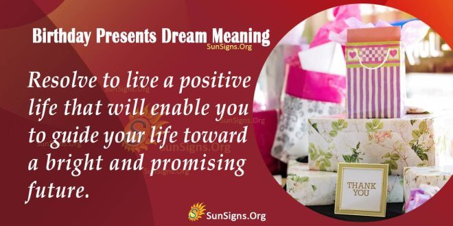 The old birthday presents dream symbol calls on you to appreciate lessons from the past. It is also a sign that you should learn from your past experiences and mistakes. Resolve to live a positive life that will enable you to guide your life toward a bright and promising future.